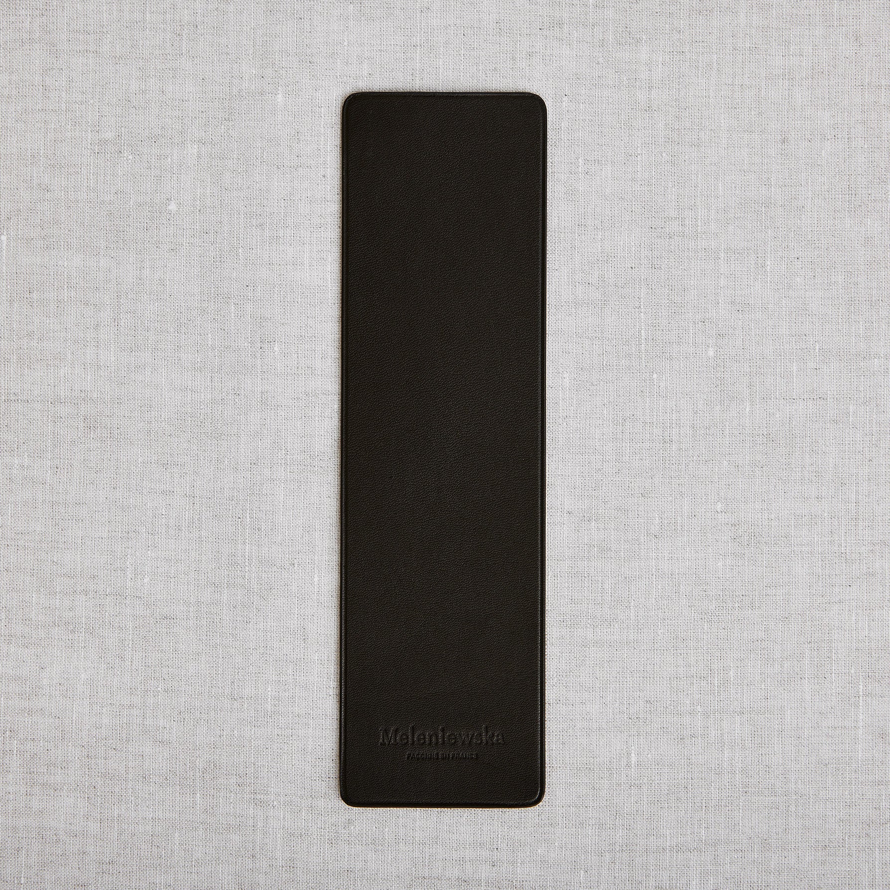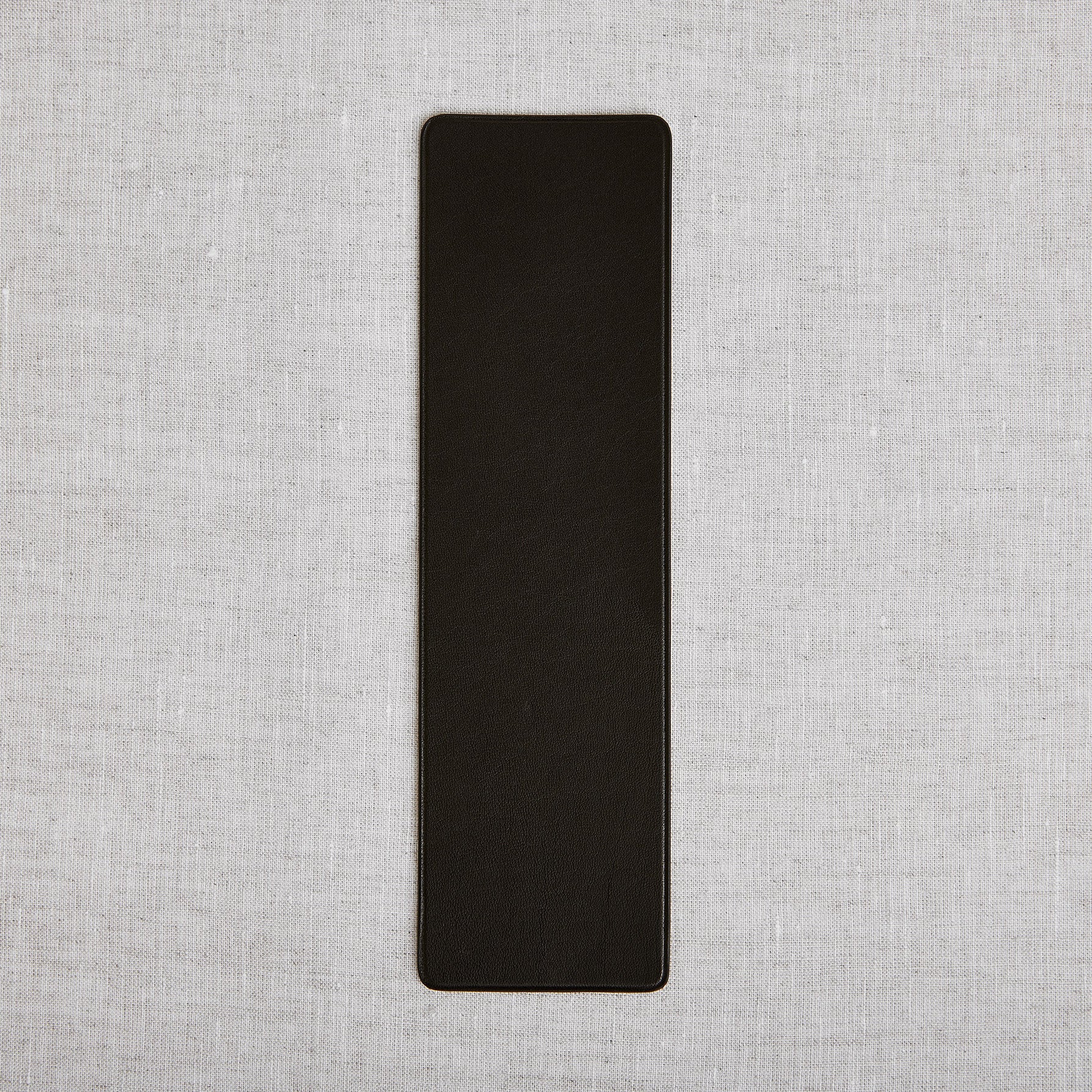 Extra-thin (1.2mm) bookmark in black aniline calfskin leather (dyed throughout). It comes in a paper case, ideal for a refined gift.