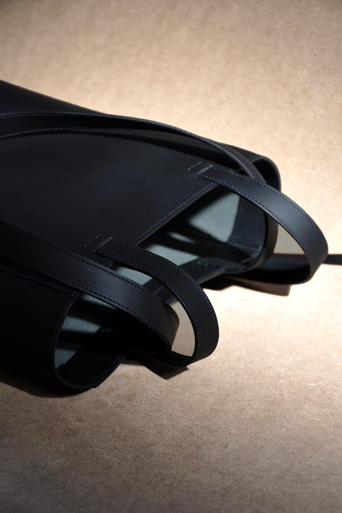Tote bag carried by hand or on the shoulder in black vegetable-tanned cowhide leather.