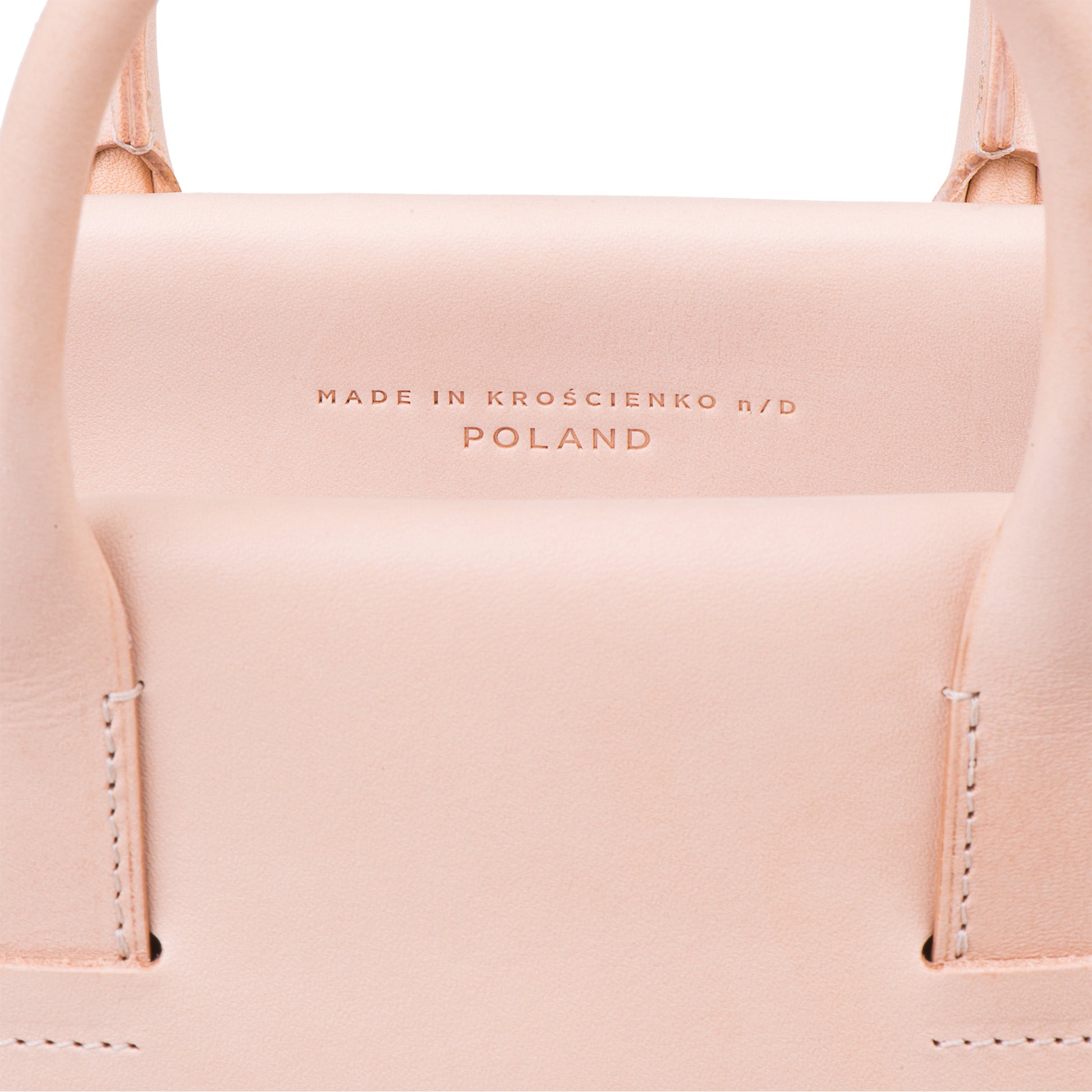 This model of the Meleniewska bag can be carried by hand, over the shoulder or across the body thanks to the removable and adjustable shoulder strap.